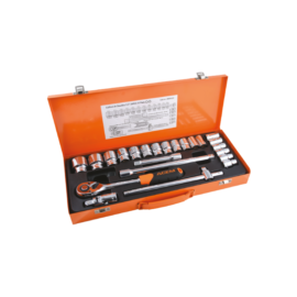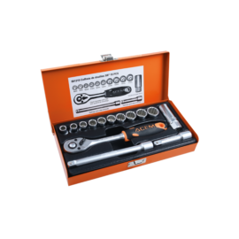 • Coffret métallique de 18 douilles et 5 accessoires.